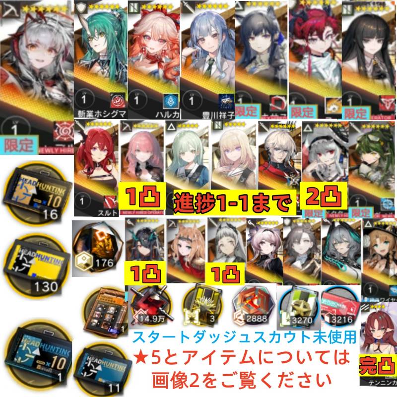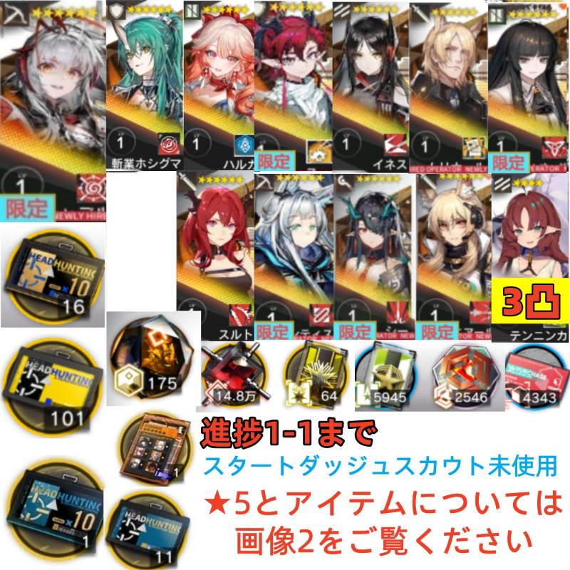 即対応 !初期垢 、進捗3-5前後 星6キャラ21体 合成玉487000個 純正源石193個¥17,500 -