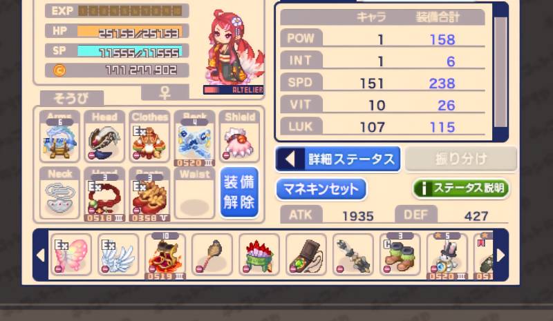 キャラクターの着せ替えアイテムや武器が豊富なのも魅力!バトルで有利になる武器や防具は購入も可能です。