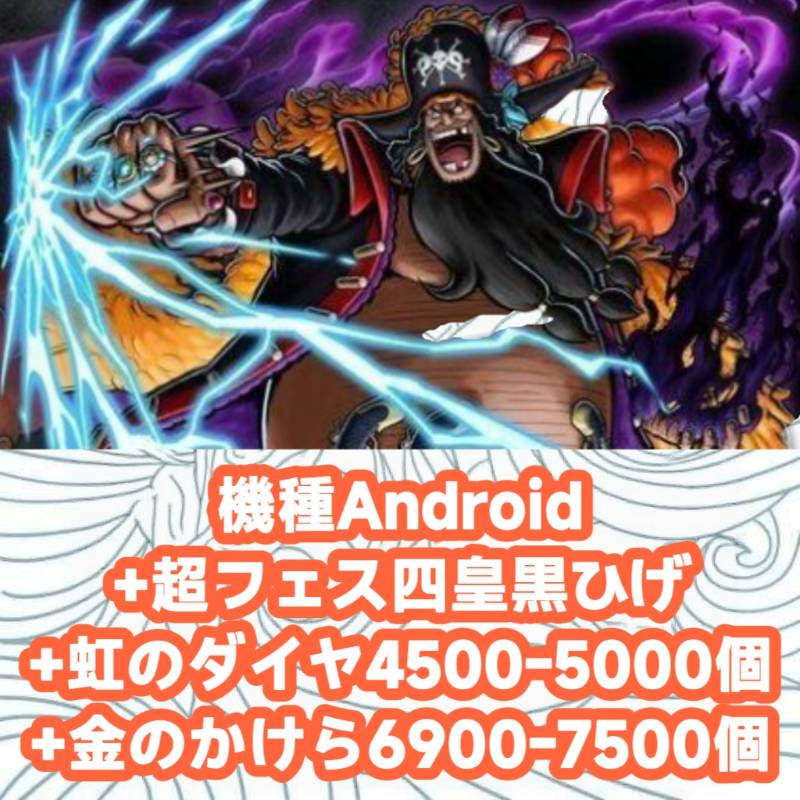機種Android+超フェス四皇黒ひげ+虹のダイヤ4500-5000個+金のかけら6900-7500¥2,950 -
