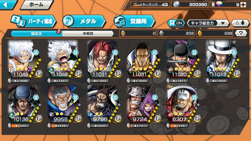 ナス寿郎聖+四皇黒ひげ+勝者ロー+緑クザン、金かけら5500〜、ダイヤ1900~、初期¥6,500 -